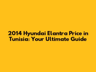 2014 Hyundai Elantra Price In Tunisia: A Complete Guide
