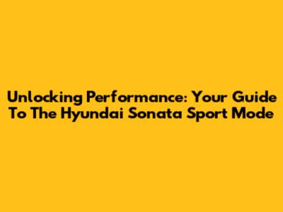 Unlocking Performance: Your Guide To The Hyundai Sonata Sport Mode