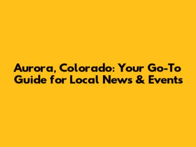 Aurora, Colorado: Your Go-To Guide For Local News & Events
