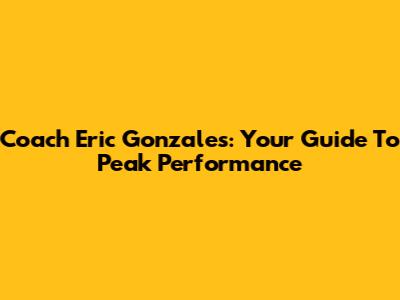 Coach Eric Gonzales: Your Guide To Peak Performance