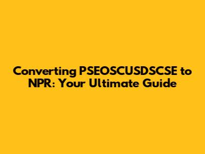 Step-by-Step Guide: Converting PSEOSCUSDSCSE to NPR