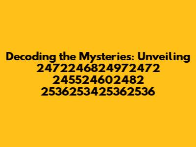 Hey guys, let's dive into something intriguing today! We're gonna crack the code on 2472246824972472 245524602482 2536253425362536. Now, I know, it looks like a jumble of numbers, but trust me, there's a story here. This isn't just a random string; it's a puzzle waiting to be solved. We're going to explore what this might represent, how it could be used, and what kind of secrets it might hold. This numerical sequence could be anything from a code, an identification number, or perhaps even a key to unlocking something special. In this article, we will go on a journey to decode and understand the full implications and meanings that are present in the number sequence.