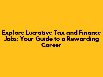 Explore Lucrative Tax And Finance Jobs