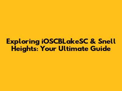 Exploring IOSCBLakeSC & Snell Heights: Your Ultimate Guide