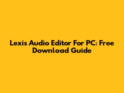 Lexis Audio Editor For PC: Free Download Guide
