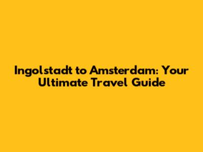 Ingolstadt To Amsterdam: Your Ultimate Travel Guide