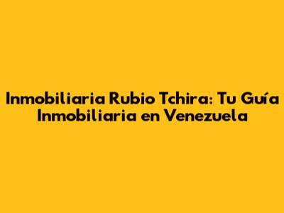 Inmobiliaria Rubio Tchira: Tu Guía Inmobiliaria En Venezuela