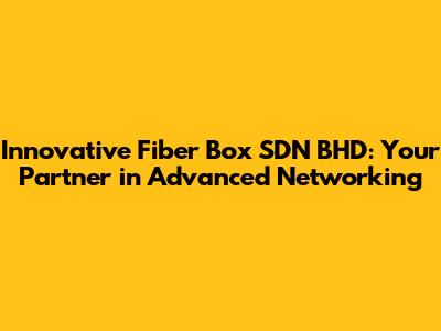Hey there, tech enthusiasts! Have you heard about Innovative Fiber Box SDN BHD? If you're knee-deep in the world of networking, fiber optics, and all things data, then this name should definitely be on your radar. We're diving deep into what makes Innovative Fiber Box SDN BHD a key player in the industry. Let's explore how they're revolutionizing the way we connect, communicate, and keep our digital world running smoothly. Ready to geek out? Let's go!