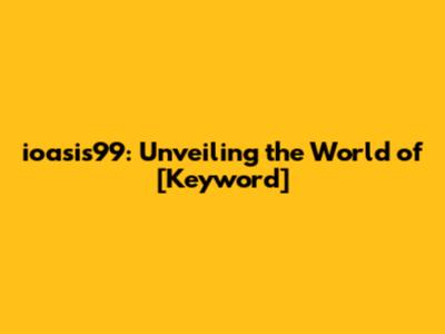 Ioasis99: A Comprehensive Guide