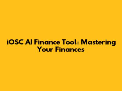 IOSC AI Finance Tool: Mastering Your Finances