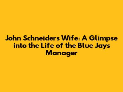 Hey guys! Let's dive into the life of John Schneider, the manager of the Toronto Blue Jays, and specifically, take a peek into his personal life, focusing on his wife. You know, it's always fascinating to see the human side of these high-profile figures, and understanding the support system behind them can be pretty cool. This article will be exploring what we know about John Schneider's wife, offering insights into their relationship, and how she supports his career. Let's get started, shall we?
