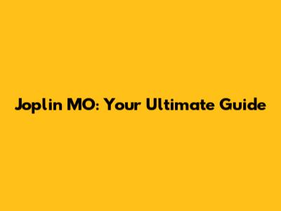 Joplin MO: Your Ultimate Guide