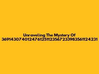 Unraveling The Mystery Of 3691430740124761251123567233983561124231