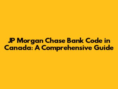 JP Morgan Chase Bank Code In Canada: A Comprehensive Guide