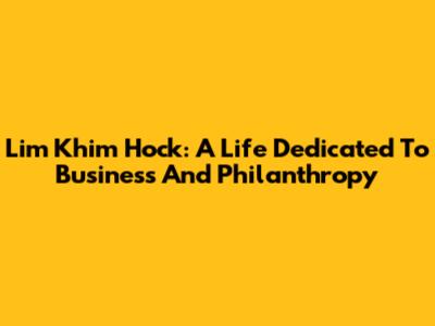 Lim Khim Hock: A Life Dedicated To Business And Philanthropy