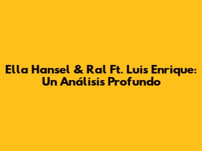 Ella Hansel & Ral Ft. Luis Enrique: Un Análisis Profundo