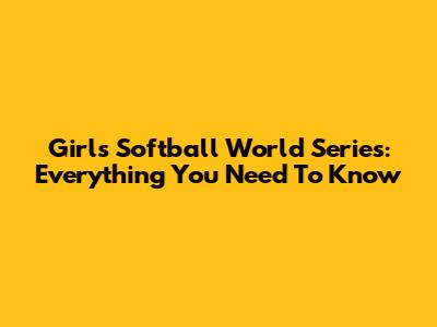 Girls Softball World Series: Everything You Need To Know