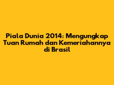 Piala Dunia 2014 menjadi ajang sepak bola paling bergengsi yang sangat dinanti-nantikan oleh jutaan penggemar di seluruh dunia. Pertanyaan tentang di mana Piala Dunia 2014 diadakan selalu menarik perhatian. Jadi, Piala Dunia 2014 secara resmi diselenggarakan di Brasil, negara yang kaya akan sejarah sepak bola dan budaya yang semarak. Sebagai tuan rumah, Brasil tidak hanya menyajikan pertandingan yang mendebarkan, tetapi juga pengalaman budaya yang tak terlupakan bagi para penggemar dari berbagai penjuru dunia.