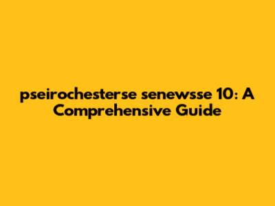 Pseirochesterse Senewsse 10: A Comprehensive Guide