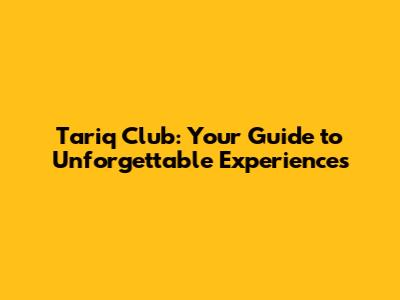 Tariq Club: Your Guide To Unforgettable Experiences