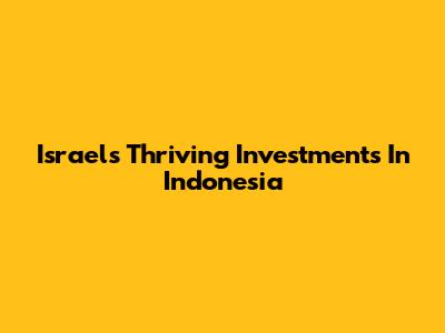 Israel's Thriving Investments In Indonesia