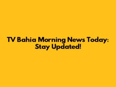 TV Bahia Morning News Today: Stay Updated!