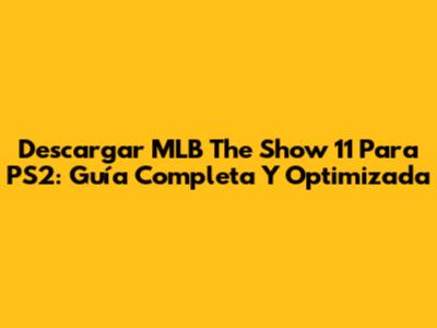 Descargar MLB The Show 11 Para PS2: Guía Completa Y Optimizada