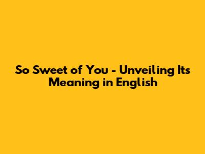 Decoding the Phrase: What Does "So Sweet of You" Really Mean?