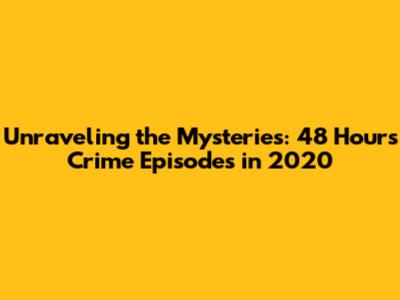 Unraveling The Mysteries: 48 Hours Crime Episodes In 2020