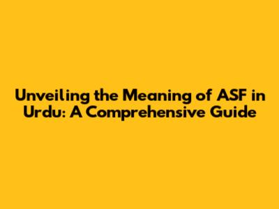 Hey guys! Ever stumbled upon "ASF" while navigating Urdu conversations or online forums and found yourself scratching your head? You're not alone! The acronym ASF pops up quite a bit, and understanding its meaning is key to truly grasping the nuances of Urdu communication. Today, we're diving deep into the world of ASF, exploring its various meanings, and helping you become fluent in understanding and using it. We'll be breaking down the different contexts in which you might encounter ASF, providing examples, and even touching upon some related concepts. So, buckle up, because by the end of this guide, you'll be an ASF pro! This article is designed to be your go-to resource, whether you're a seasoned Urdu speaker, a language learner, or simply curious about the topic. We'll keep things clear, concise, and easy to understand, so get ready to unlock the secrets of ASF in the Urdu language.