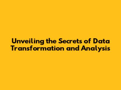 Unveiling The Secrets Of Data Transformation And Analysis